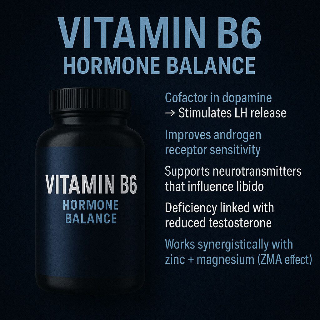 Vitamin B6 is often overlooked, but it plays a critical role in hormone synthesis and neurotransmitter balance that directly influence testosterone.